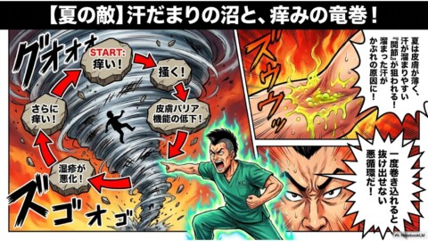 夏になると首、肘、膝裏、わきの下、足の付け根などの関節が痒くなり、