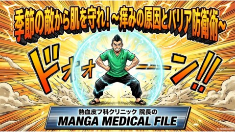 季節によって痒み、湿疹が生じやすい部位を把握しておくことは特に乾燥肌傾向の方、アトピー性皮膚炎の方にとって大切な、保湿剤を使用した皮膚バリア機能の維持を考えるにあたって「そろそろ夏だから関節部分を気を付けよう」とか「春になって空気が汚れてきたから顔を気を付けておこう」とあらかじめ重点的に予防しておいた方が良い部位を予測することに繋がります。