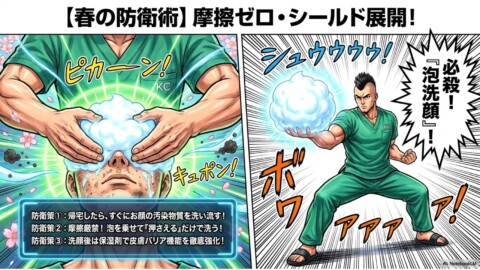 - 洗顔時は皮膚に摩擦を生じないよう泡を乗せて押さえる「泡洗顔」を心がける